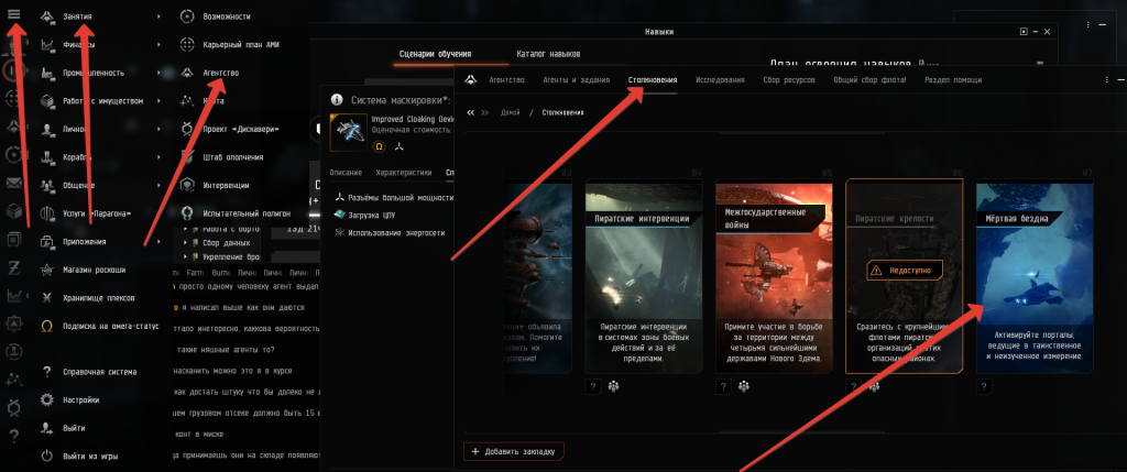 В целом вы можете пробовать любой контент из любопытства, но заклинаем не трогать задания агентов. Уронить отношения с государствами очень легко, а денег там на старте нет.
